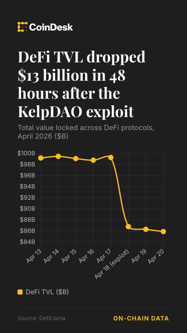 - KelpDAO’s $292 million exploit triggered $13 billion in DeFi TVL losses, but much of that was leveraged positions unwinding – not real capital destruction.