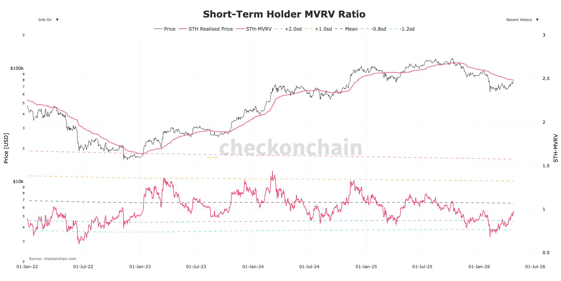 Just a smidge higher sits the Short-Term Holder Realized Price (STHRP) at $79,200, as per the same diligent tracker. This cohort consists of investors who hold their coins for fewer than 155 days, a group prone to emotional price swings like a soap opera character in a dramatic plot twist. With spot prices lingering below their average entry, these participants find themselves in the unfortunate position of being slightly underwater, having tested the STHRP back in mid-January at about $98,000 only to be met with a cold, hard rejection.
